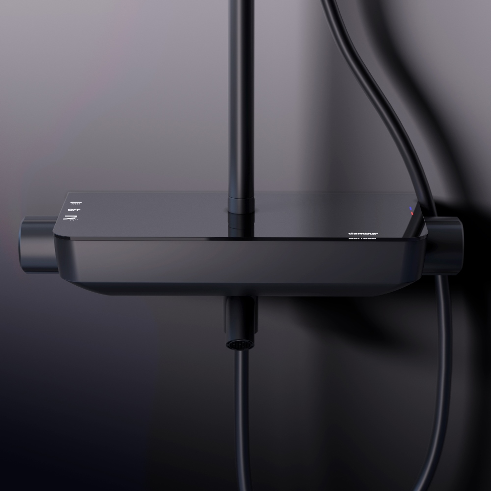 Инновационное PVD-покрытие гарантирует чрезвычайную прочность душевой системы. Матово-черная поверхность не выцветает с годами и устойчива к механическим повреждениям загрязнениям и отпечаткам пальцев.
