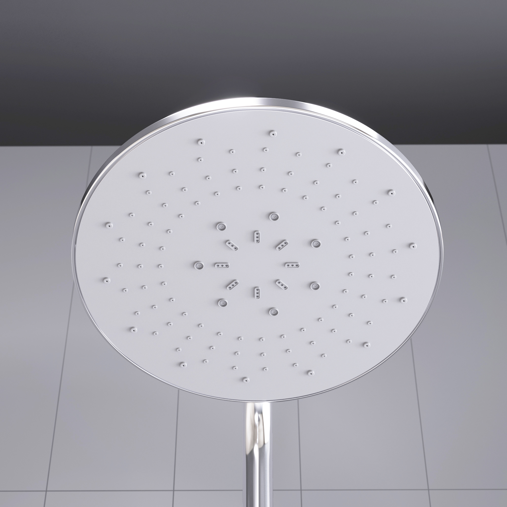 Душевая система Futura с тропическим душем  ручным душем с 3 функциями и длинным шлангом в 1500 мм - просто находка в своем сегменте. А стойка с возможностью регулировки по высоте станет приятным бонусом для тех  кто ценит эргономичность и функциональность.