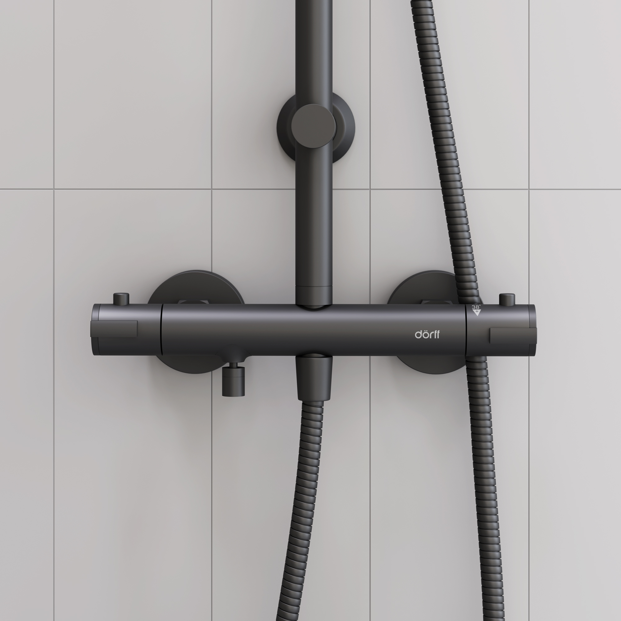 Термостат душевых систем в элегантных современных размерах предотвратит от ожогов даже при внезапном отключении холодной воды. Встроенный стопор безопасности на 38 градусов.