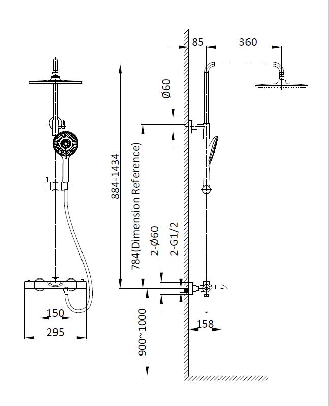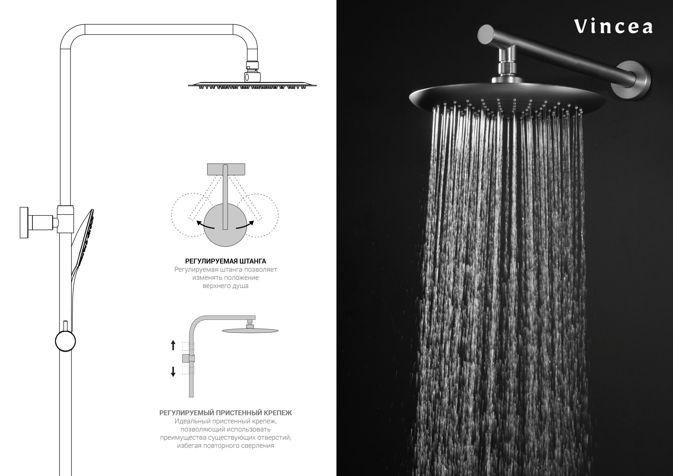 —Душевая стойка Vincea Esse VSFS-1E1TCH настенная цвет хром с термостатом