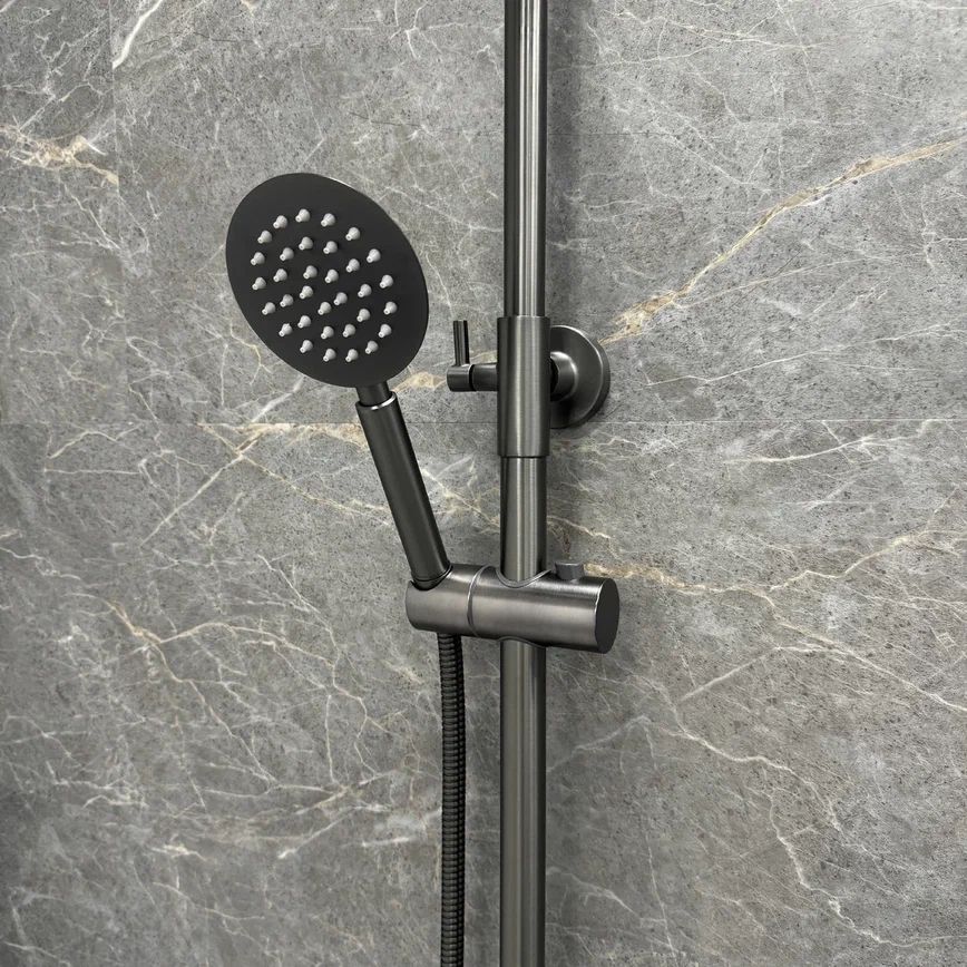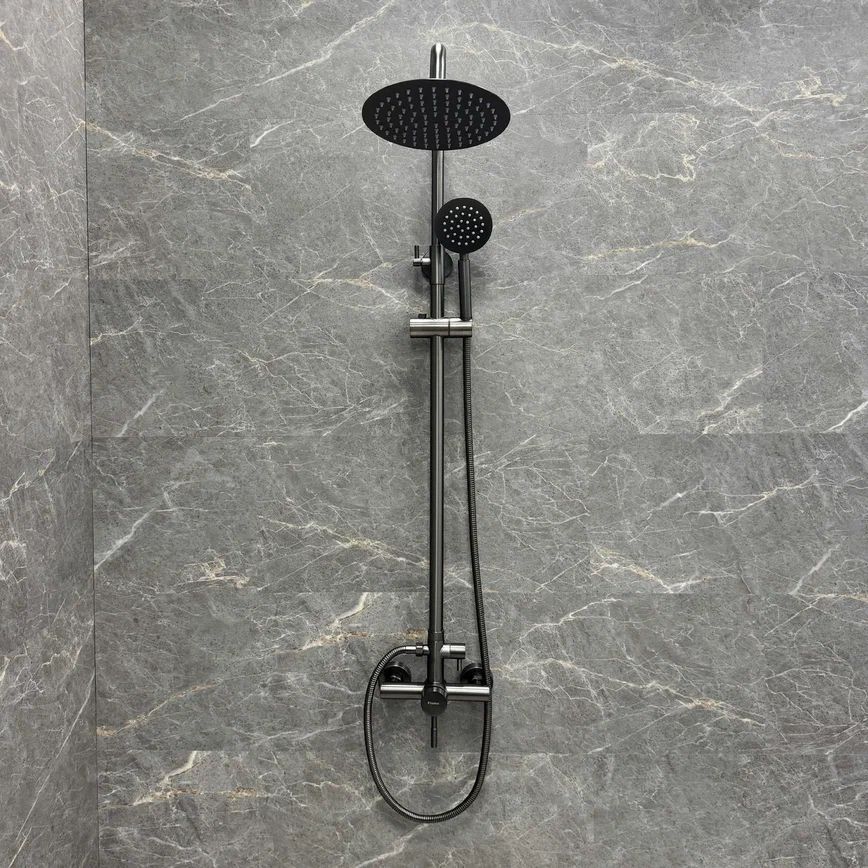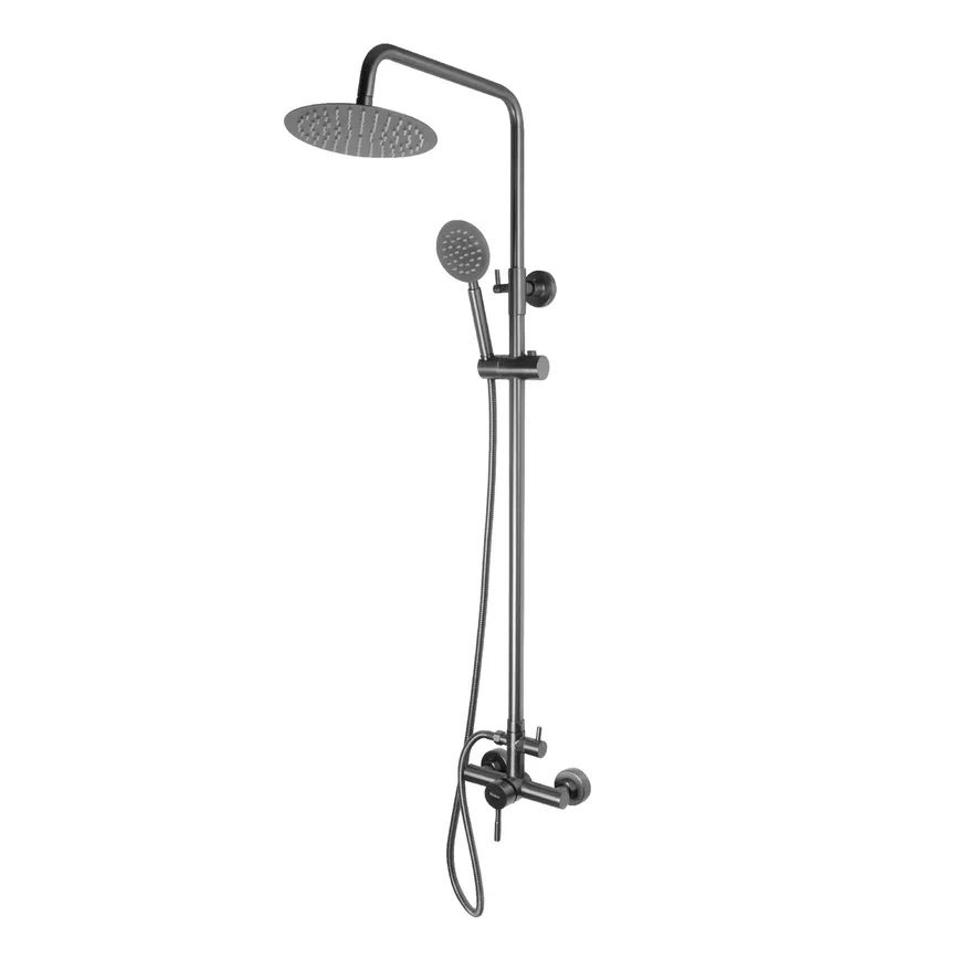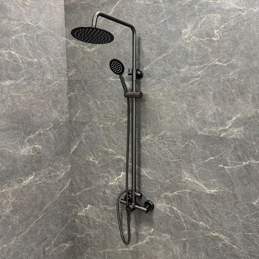 верхний душ, душевая штанга с держателем лейки, ручной душ, смеситель, шланг