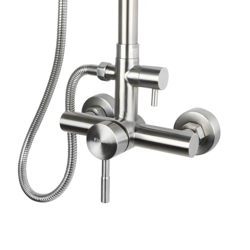 Душевая система с тропическим душем, смесителем и ручной лейкой Fixsen OXFORD FX-9500N - идеальное решение для вашей ванной комнаты. Изготовленная из высококачественных материалов, эта стойка для душа  гарантирует долговечность и надежность использования. Тропический душ: ультратонкая лейка диаметром 20 см с вращением на 40 градусов. Изготовлена из нержавеющей стали. 90 резиновых форсунок для комфортного душа. Специальная прокладка-фильтр задерживает крупные частицы, предотвращая засорение. Легкая и прочная 1-режимная ручная лейка из нержавеющей стали. Шланг в цвет душевой стойки. Штанга с резьбовым соединением. Крепление к стене с монолитным держателем из нержавеющей стали. Фиксатор закрепляется двумя штифтами (в комплекте). Фиксатор тропического душа с поворотным винтом из нержавеющей стали. Керамический картридж обеспечивает плавную и надежную работу, минимизируя риск протечек и обеспечивая комфортное использование. Не упустите возможность приобрести эту стильную и функциональную душевую систему с тропическим душем и ручной лейкой Fixsen OXFORD FX-9500N, которая станет украшением вашей ванной и подарит комфорт на каждый день.