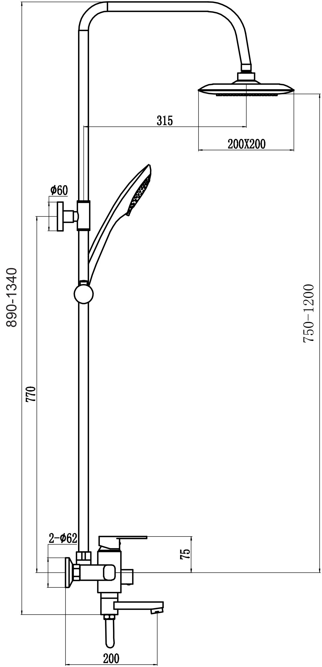 —Душевая стойка Fmark FM2402 настенная цвет хром