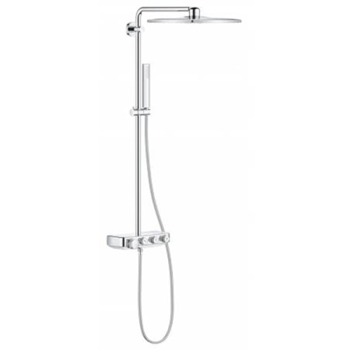 Термостат с аквадиммером и системой Grohe TurboStat поддерживает постоянную температуру воды, а ограничитель температуры SafeStop при 38 градусах предотвращает ошпаривание.