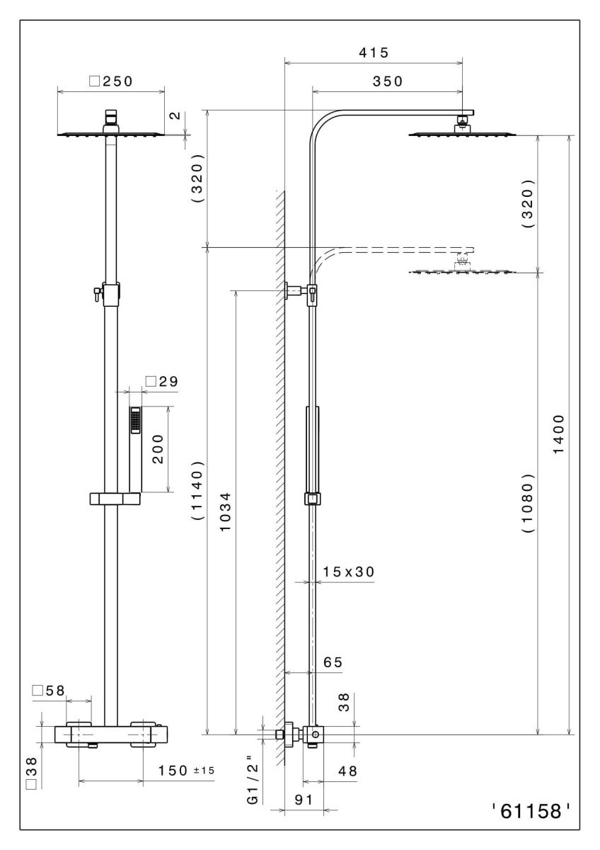 Душевая колонна с термостатическим смесителем в комплекте с переключателем потоков, квадратной верхней одноструйной душевой лейкой из нержавеющей стали, с ручным душем и шлангом из ПВХ.
