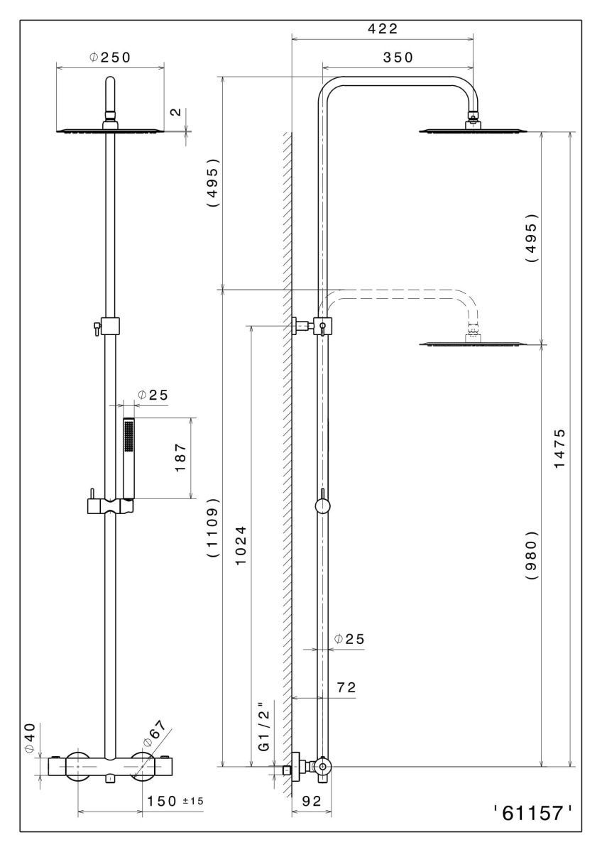 —Душевая стойка Kerama Marazzi OLE 61157KM.21.018 настенная цвет хром с термостатом