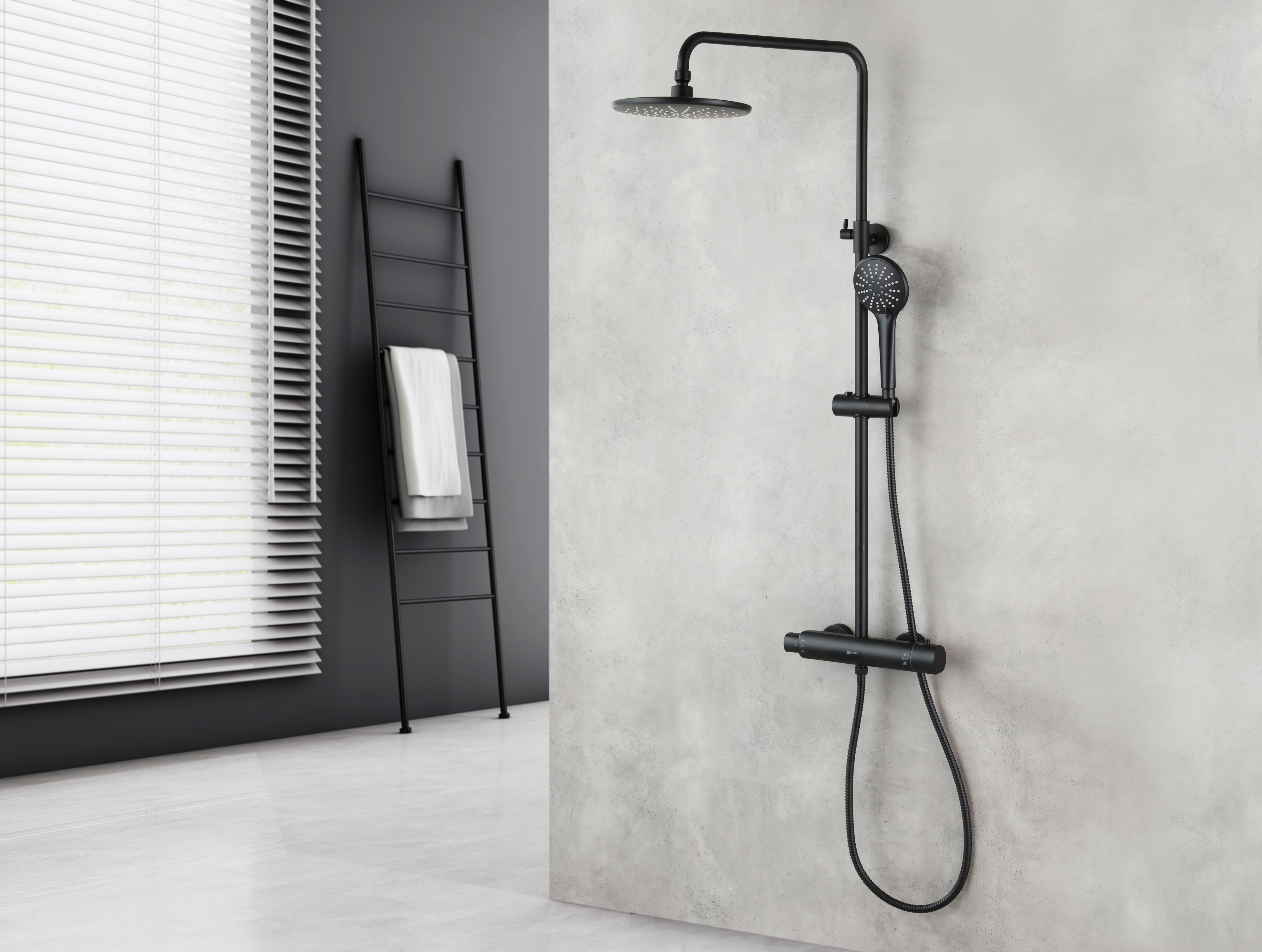 —Душевая стойка LeMark Bronx LM3770BL настенная с термостатом