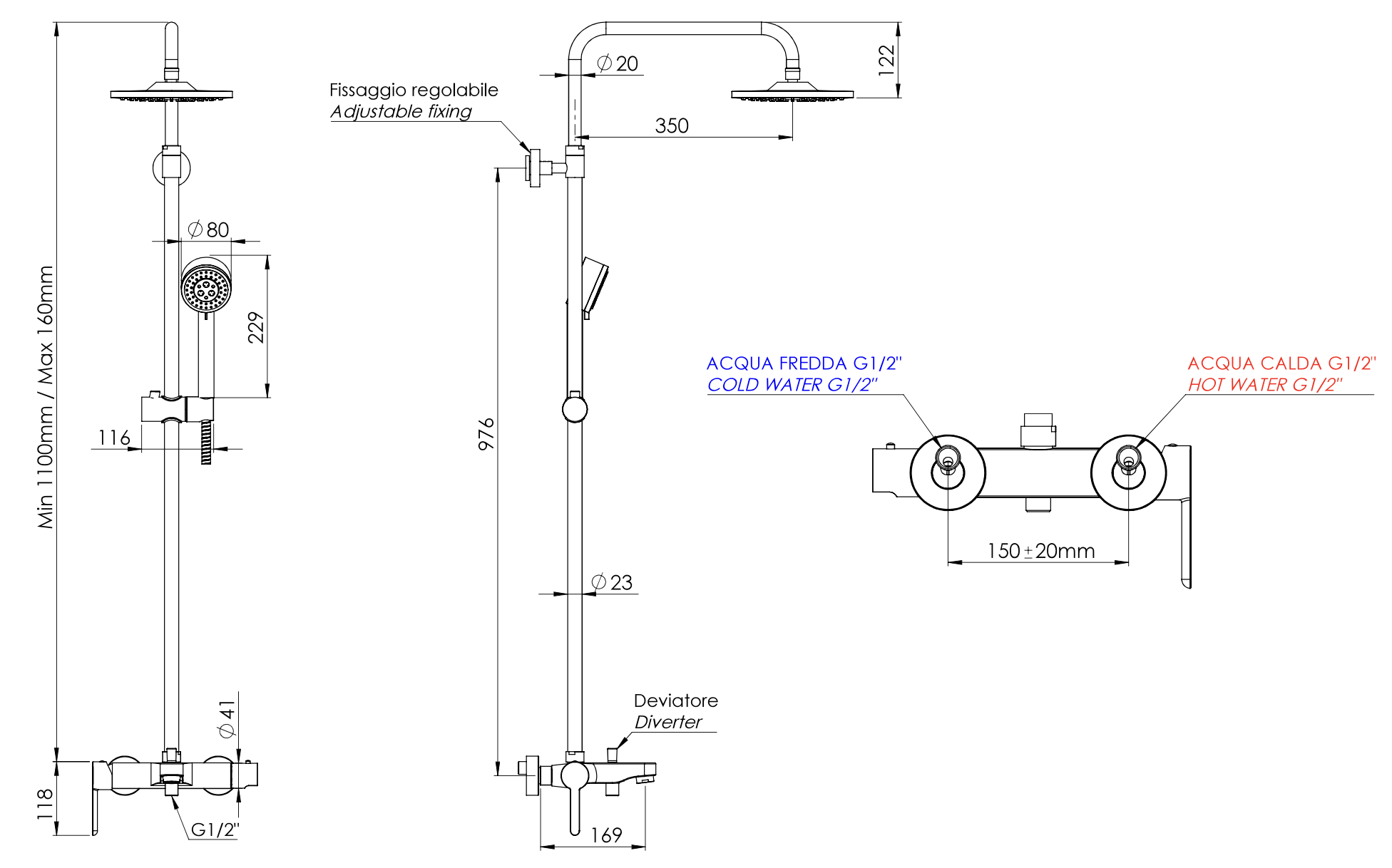 —Душевая стойка Mariani Winter B00260WNA01 настенная