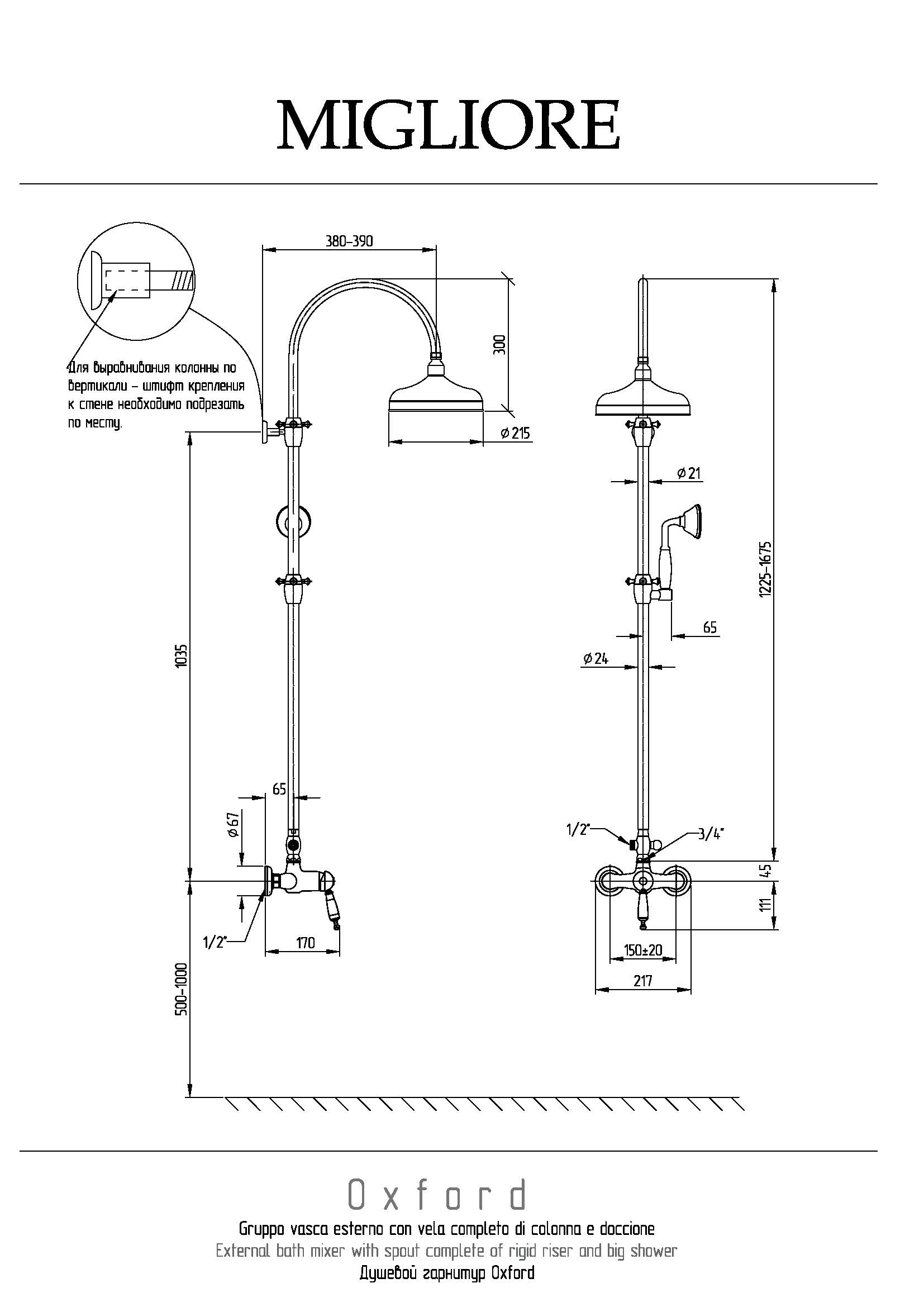 —Душевая стойка Migliore OXFORD 30948 настенная цвет бронза
