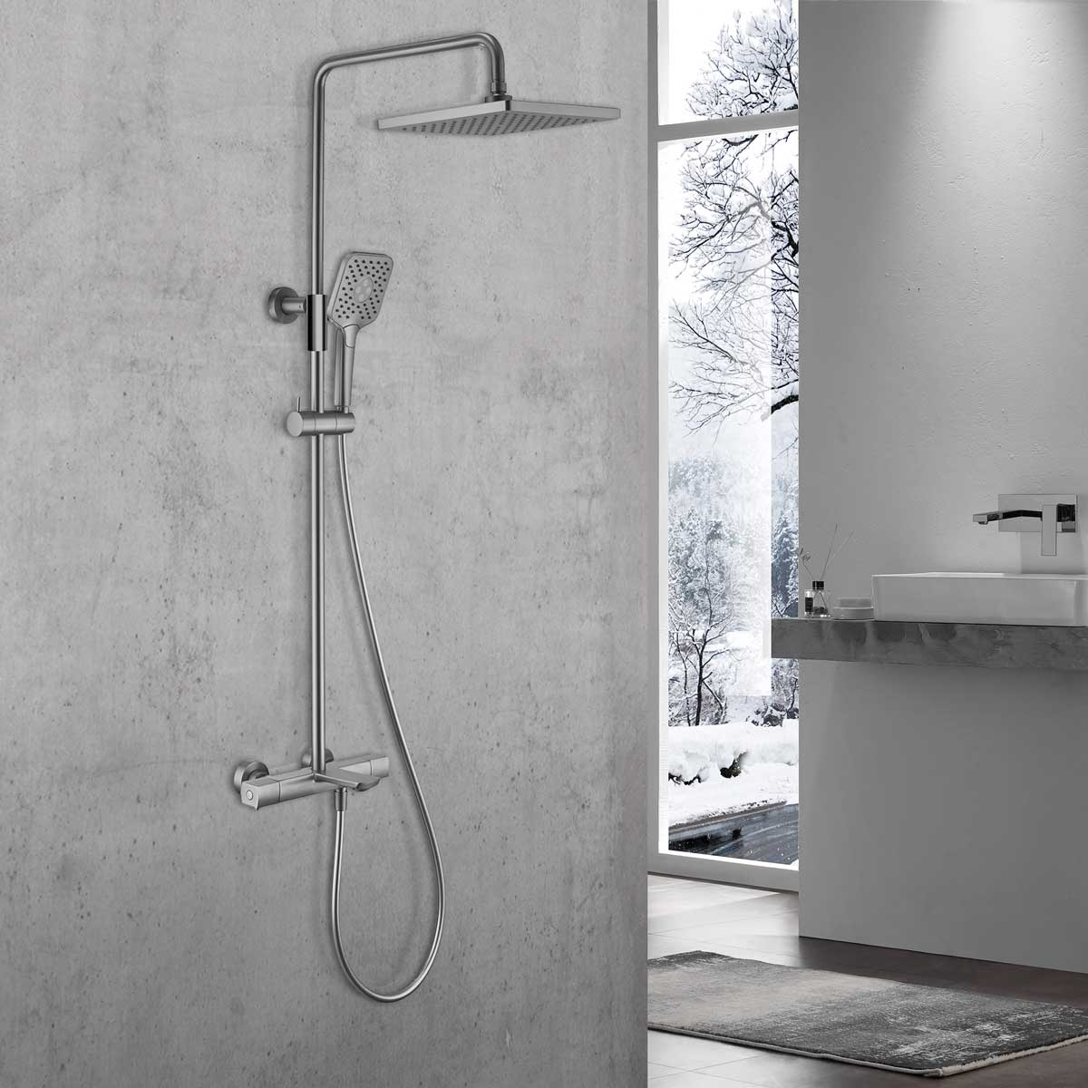 —Душевая стойка Vincea Next VSFS-1N1TGM настенная цвет вороненая сталь с термостатом