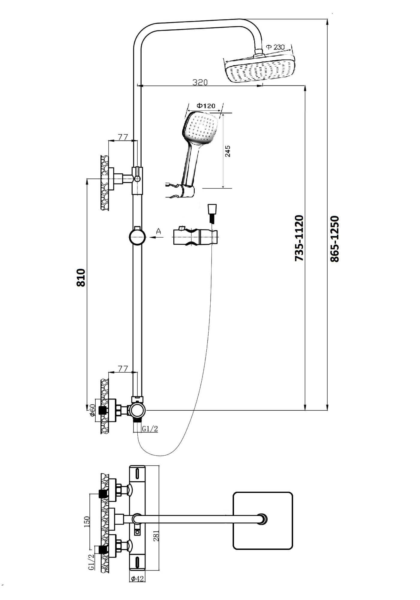 —Душевая стойка Orange Thermo T02S4-912cr настенная цвет хром с термостатом