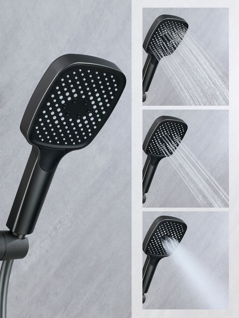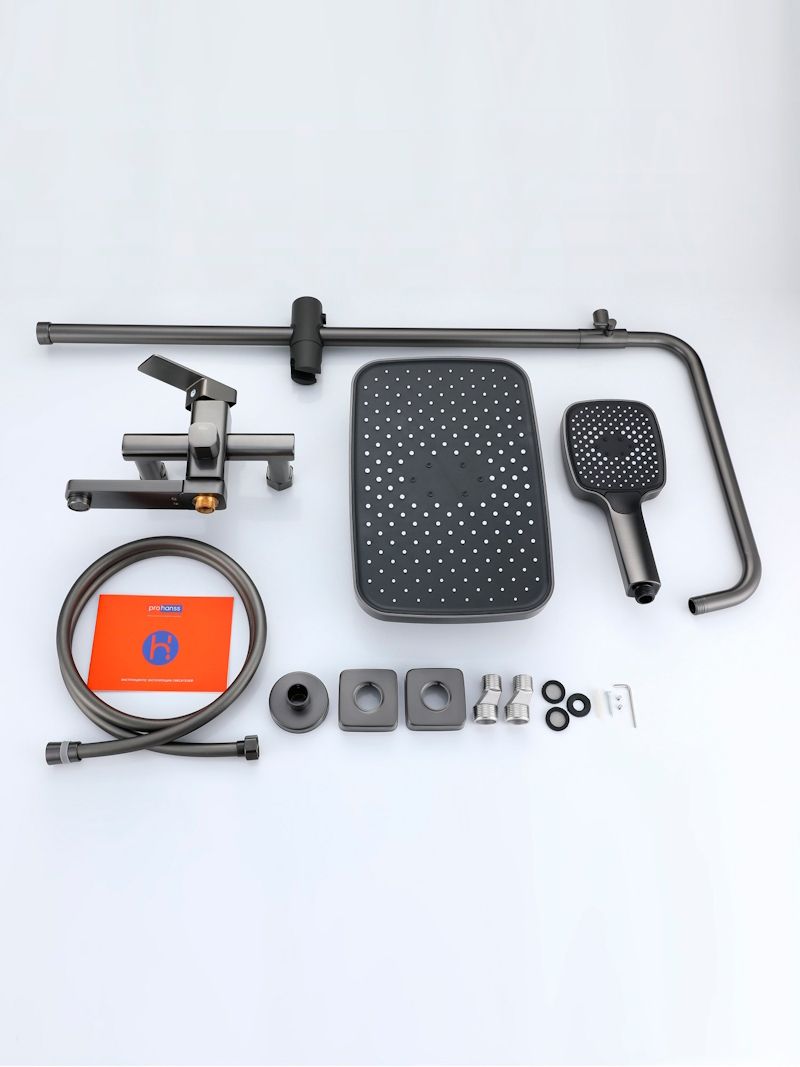 верхний душ, душевая штанга с держателем лейки, ручной душ, смеситель, шланг