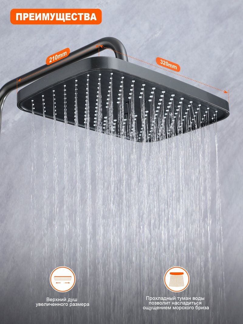 Душевая система с тропическим душем, смесителем, поворотным изливом и ручной лейкой Prohanss P60.24.09 - идеальное решение для вашей ванной комнаты. Изготовленная из высококачественных материалов, она гарантирует долговечность и надежность использования. Верхний душ 320х210 мм регулируется по высоте благодаря телескопической штанге и по наклону с помощью встроенного шарнира, что обеспечивает максимальный комфорт и удобство использования. Самоочищающиеся силиконовые форсунки предотвращают образование известкового налета и сохраняют чистоту и силу потока воды. Ручной душ с 3 режимами работы также регулируется по высоте и наклону для оптимального комфорта использования. Система оснащена поворотным изливом, который идеально подходит для удобного наполнения ванны и позволяет использовать душ в качестве смесителя для других нужд. На душевую систему Prohanss предоставляется гарантия 1 год. Эта стильная и функциональная душевая система станет отличным выбором для обновления вашей ванной комнаты.