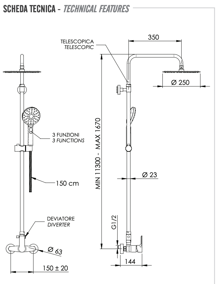 —Душевая стойка Remer Energy EY37A8MPUFM25G настенная