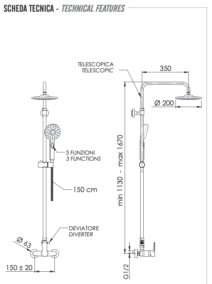 —Душевая стойка Remer Energy EY37AEC20 настенная