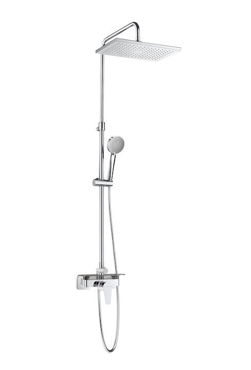 Душевая стойка с верхним душем и однорычажным смесителем.