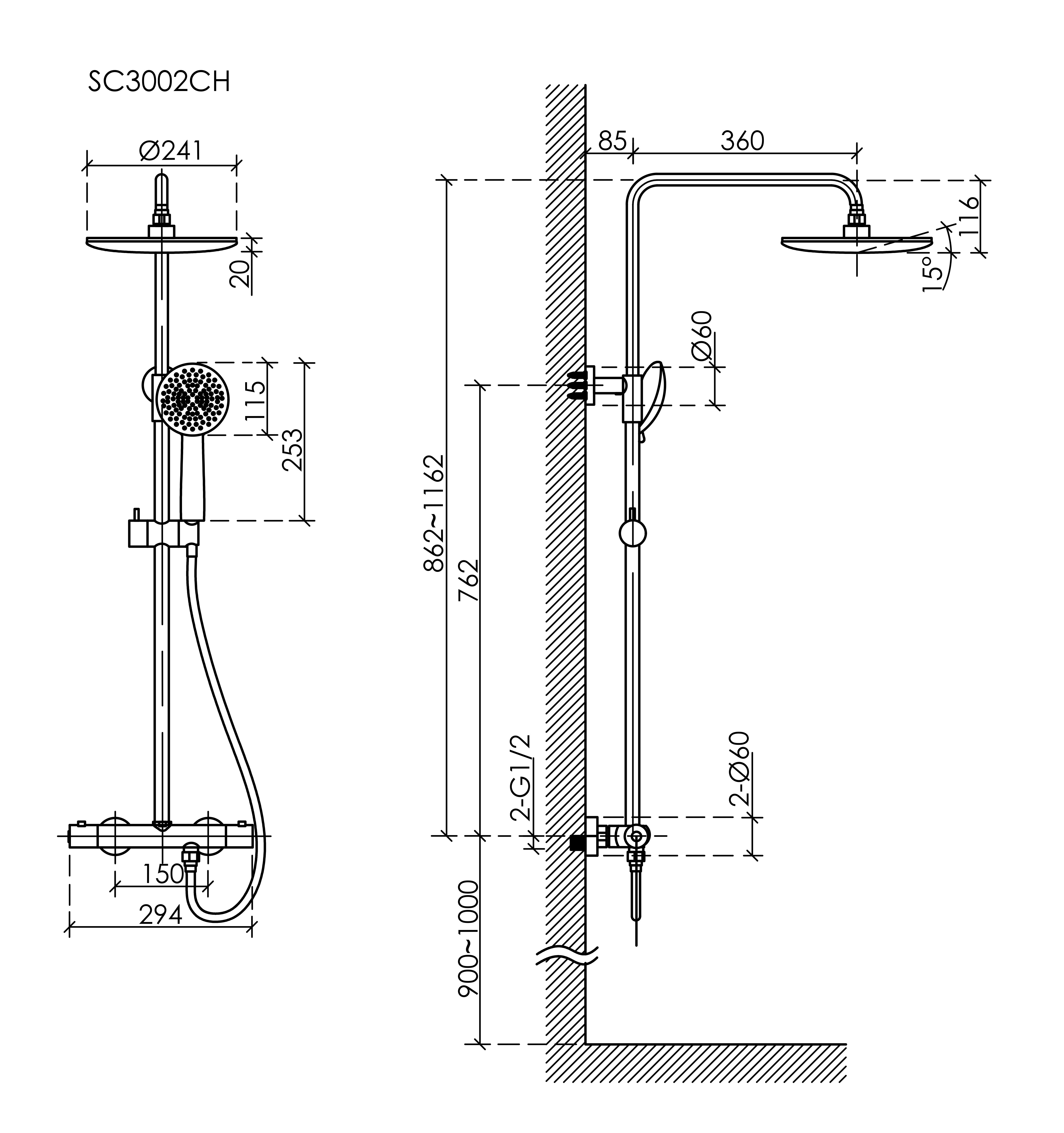 —Душевая стойка Sancos Game SC3002CH настенная цвет хром с термостатом