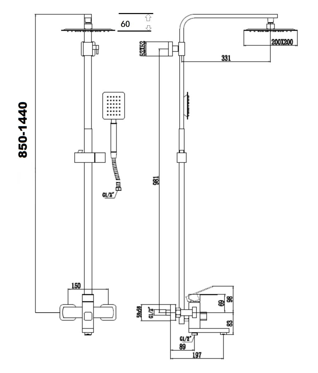 —Душевая стойка Savol S-SUS5001 настенная цвет сатин