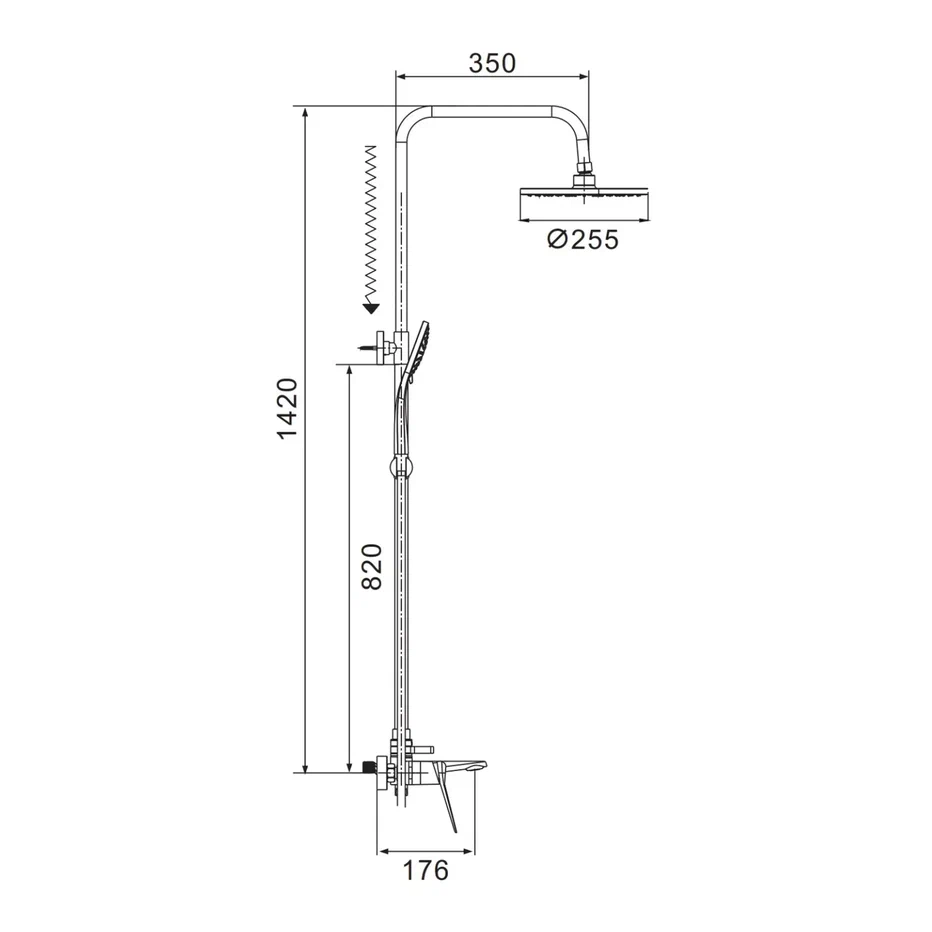 Душевая система Shevanik S8436H, черный. Количество режимов струи: 3. Размер верхнего душа: 25,5x25,5 см. Управление: рычажное. Излив для наполнения ванны: да.