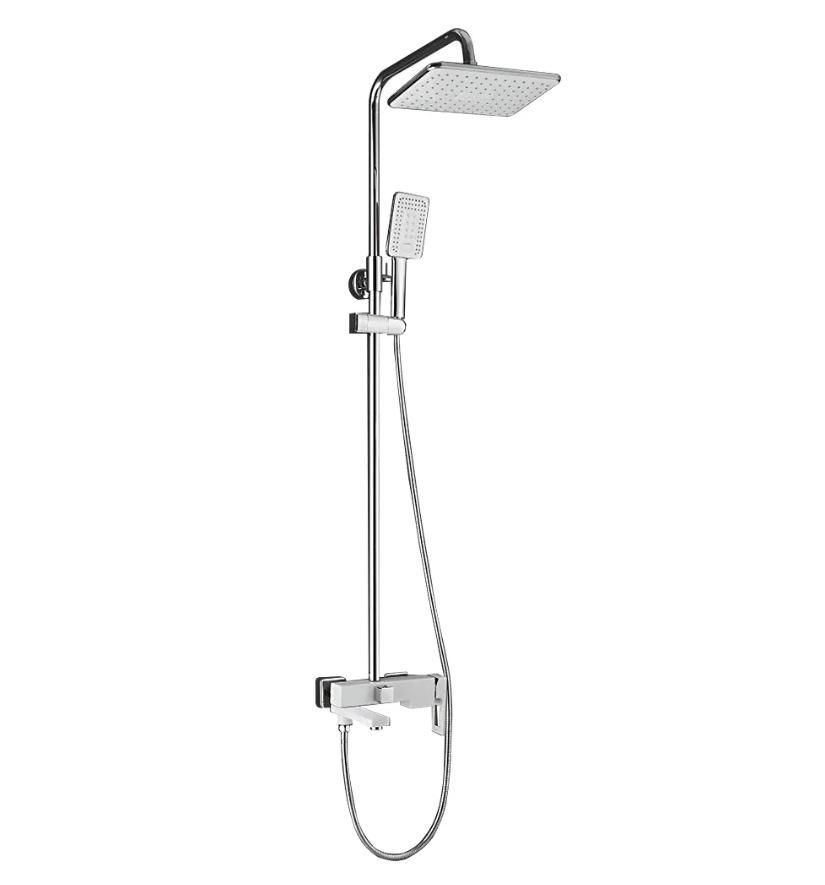 Душевая система Shevanik S9036F, белый/хром. Количество режимов струи: 3. Размер верхнего душа: 28x19 см. Управление: рычажное. Излив для наполнения ванны: да.