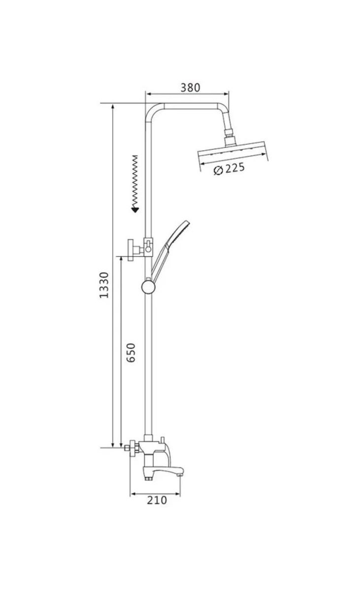 Душевая система Shevanik S9436, хром. Количество режимов струи: 1. Размер верхнего душа: 22,5x22,5 см. Управление: рычажное. Излив для наполнения ванны: да.