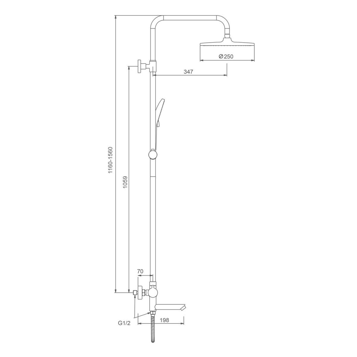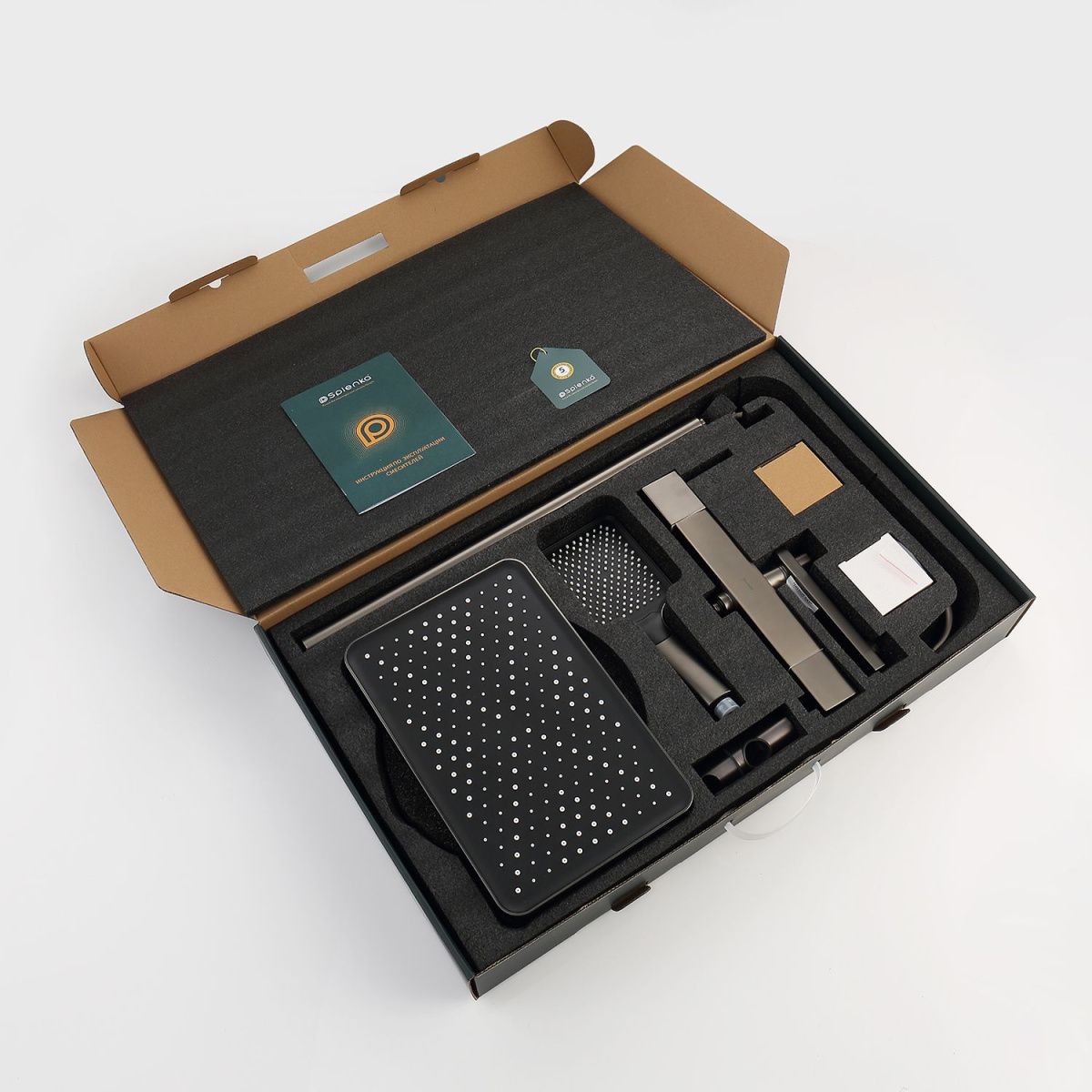 верхний душ, душевая штанга с держателем лейки, ручной душ, смеситель, шланг