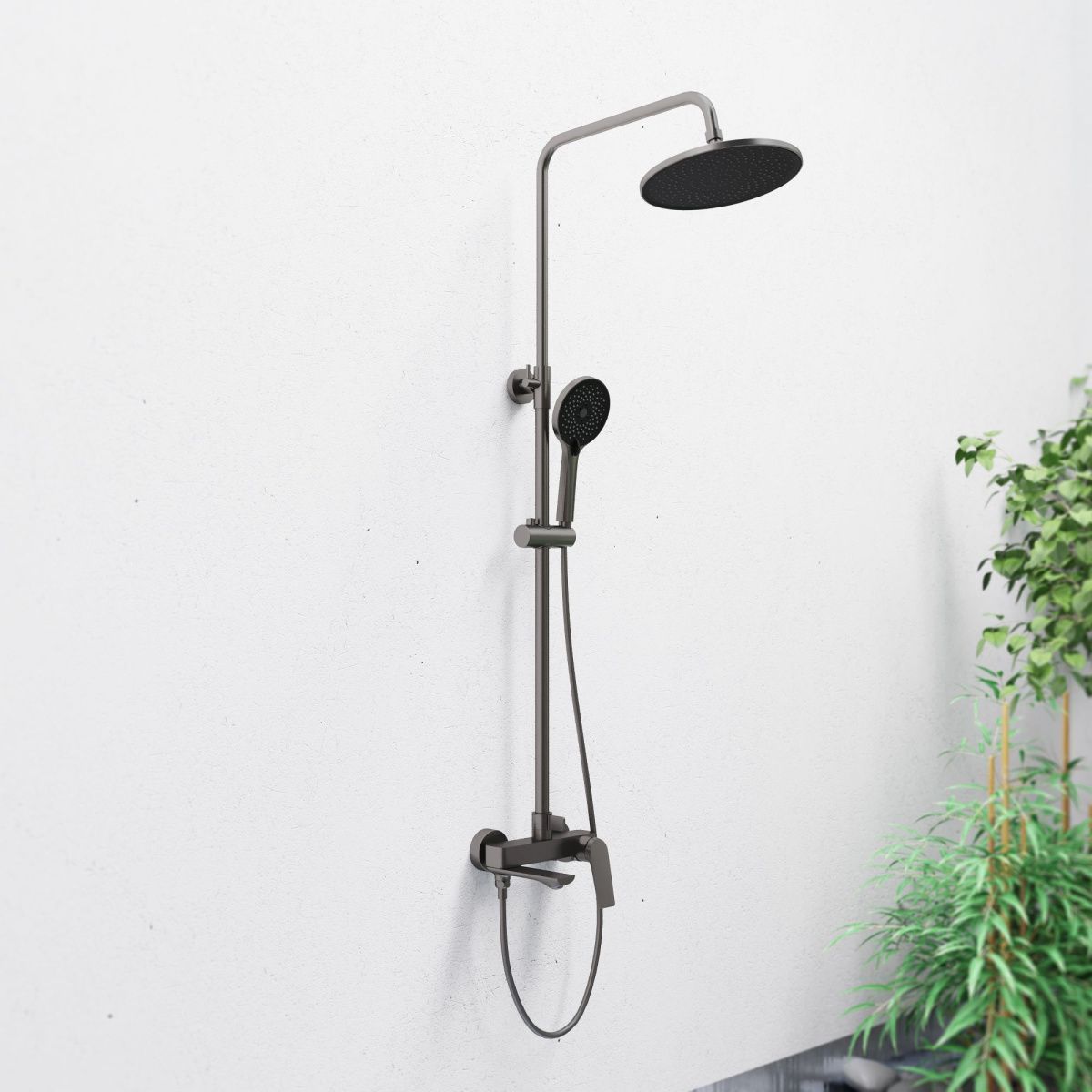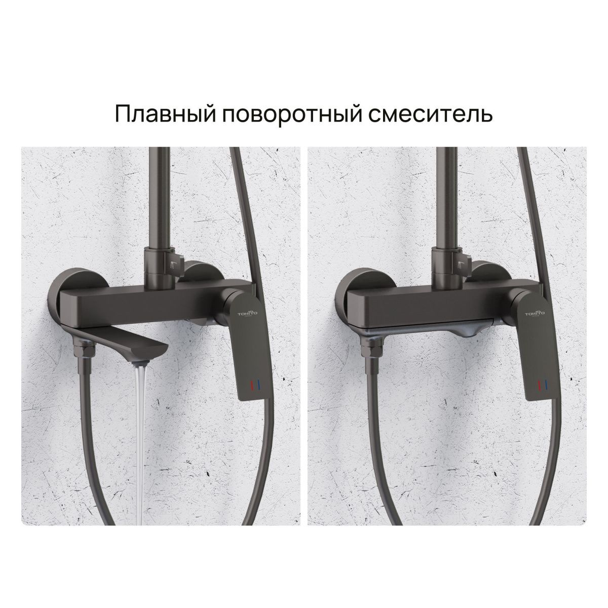 —Душевая стойка Tokito Rain TOK-RAI-1017GM настенная цвет вороненая сталь