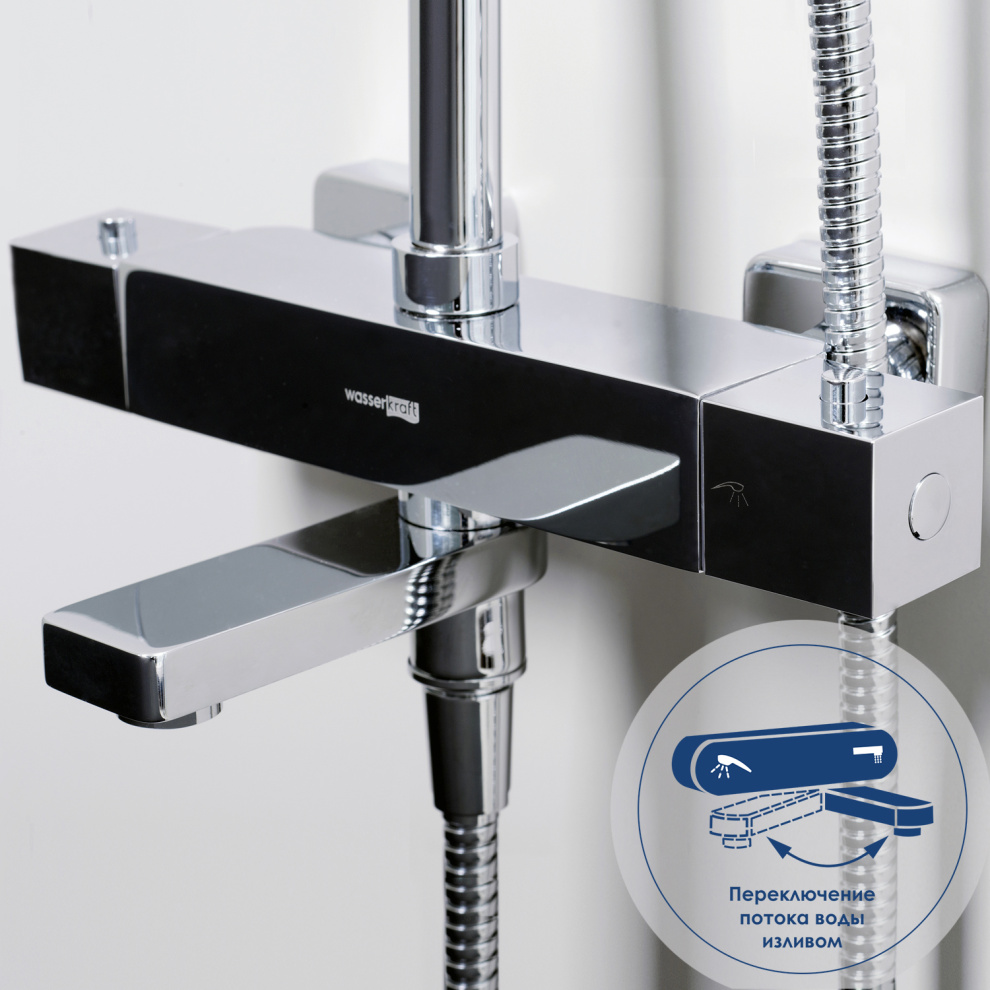 —Душевая стойка WasserKRAFT A19901 настенная цвет хром с термостатом