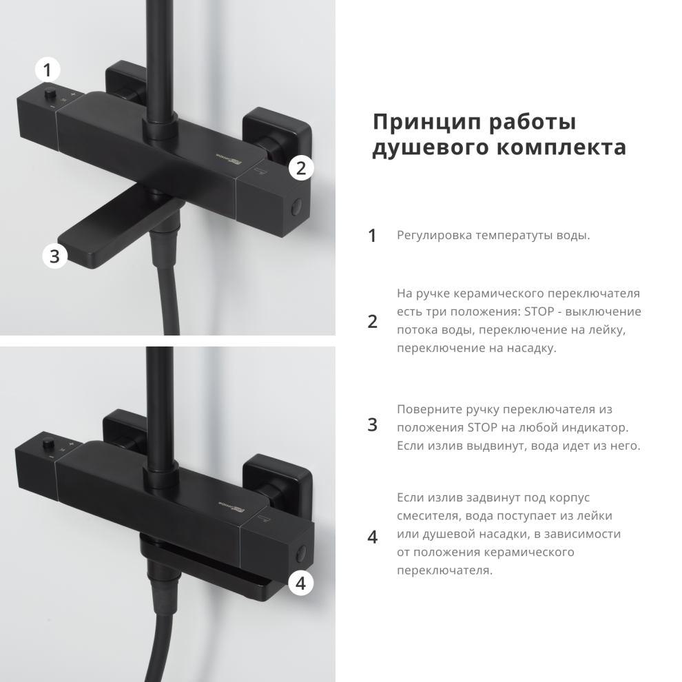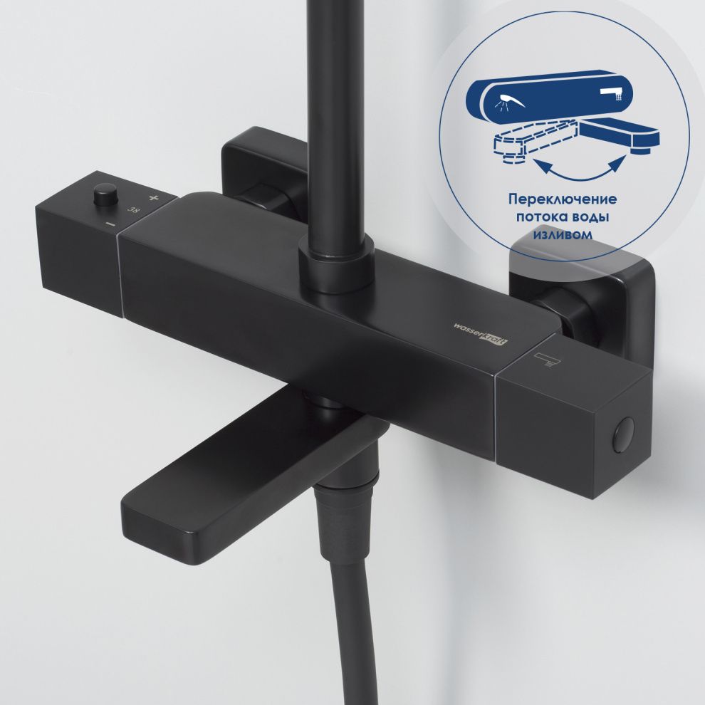 —Душевая стойка WasserKRAFT A29901 настенная цвет черный с термостатом