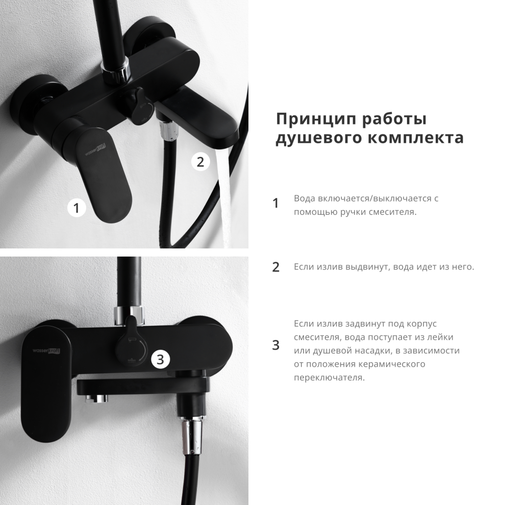 Душевая стойка WasserKRAFT Elbe 7400 A17401 настенная цвет черный
