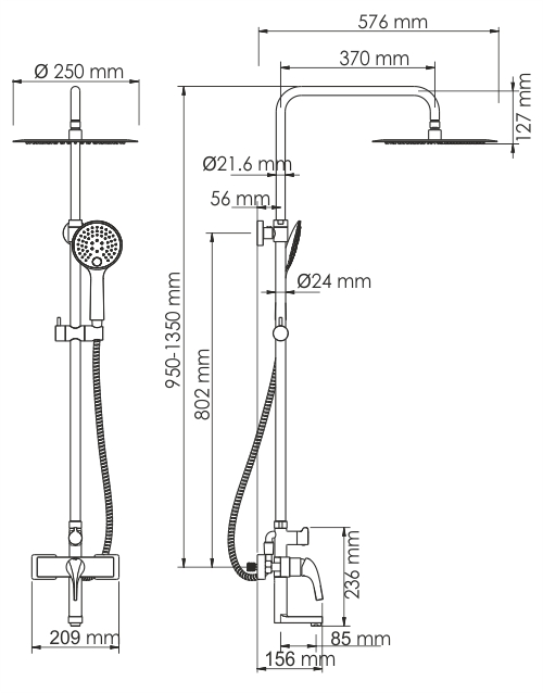 —Душевая стойка WasserKRAFT Sauer A17101 настенная цвет золото