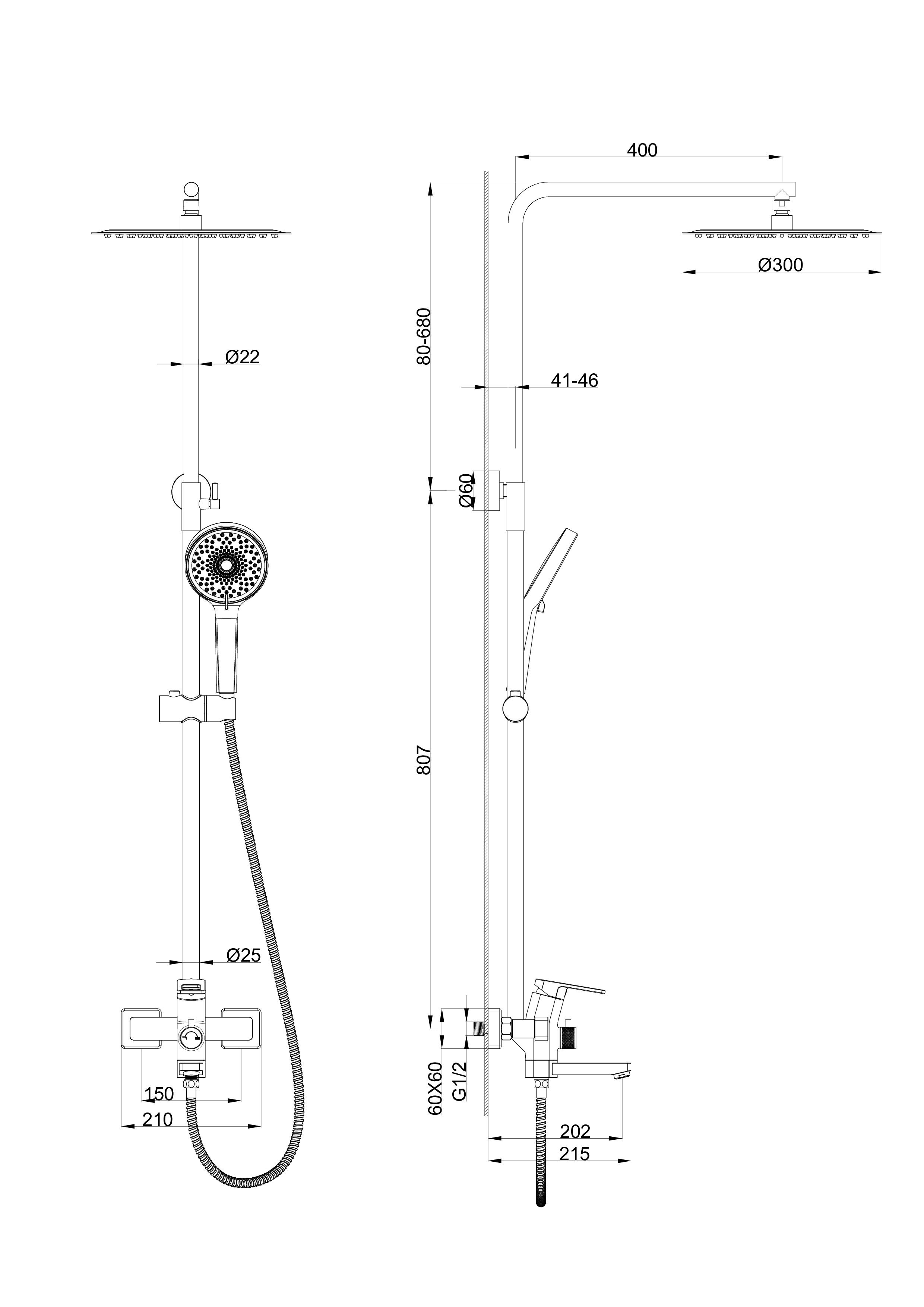 —Душевая стойка Wonzon & Woghand Frame WW-88739010-MB настенная цвет черный