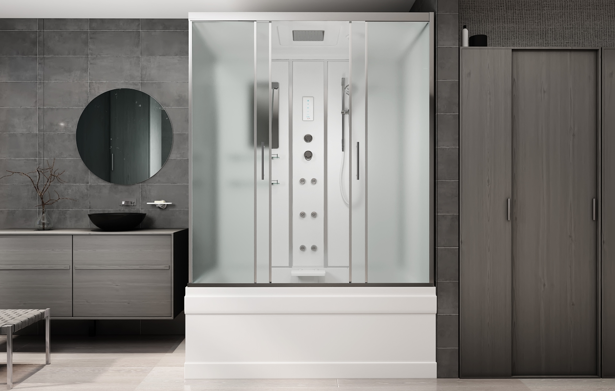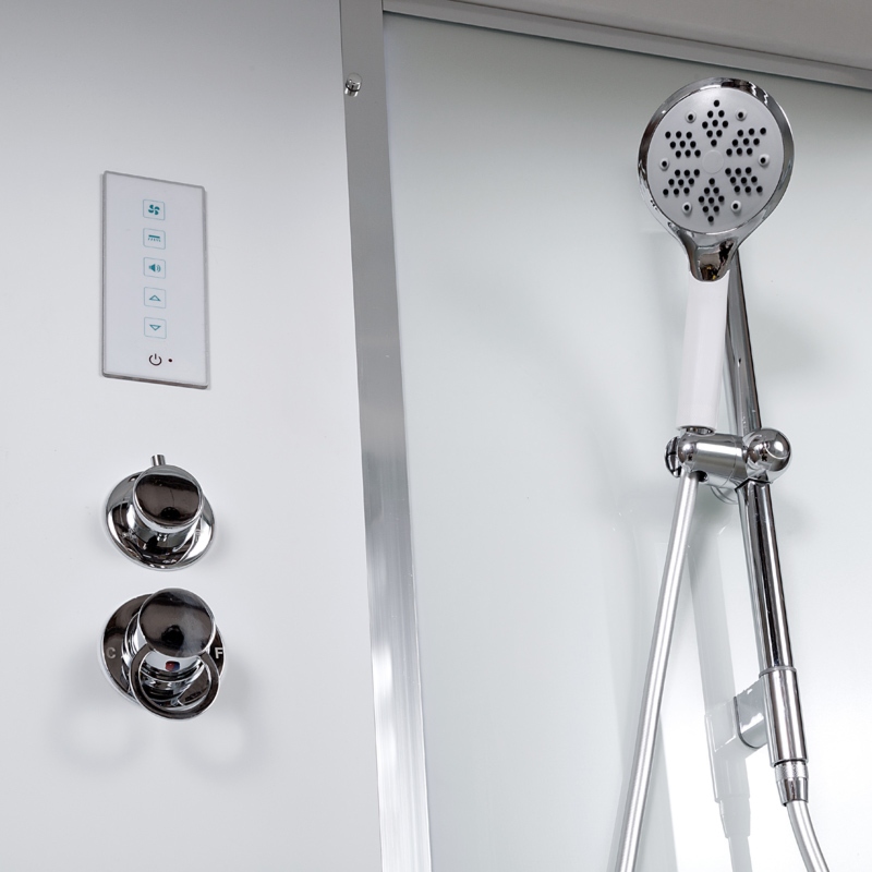 Стильная душевая кабина с внутренней сборкой AvaCan EM 4516 с гидромассажем и электрикой сочетает в себе высокую функциональность, практичность и надежность. Для изготовления применяют безопасное закаленное стекло толщиной 5 мм, надежно фиксируемое алюминиевым профилем. Цвет профиля хром. В комплекте зеркало, сенсорный пульт управления, донный клапан (клик-клак), душевой гарнитур, смеситель, тропический (верхний) душ, переключатель режимов, вентиляция, полочки, гидромассажные форсунки, тропический (верхний) душ, вентиляция, радио.