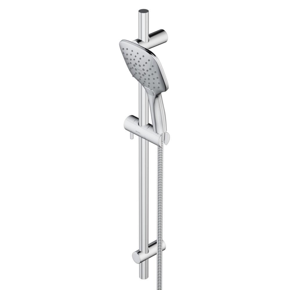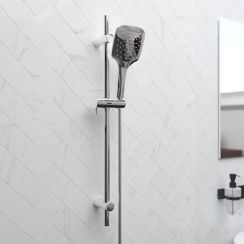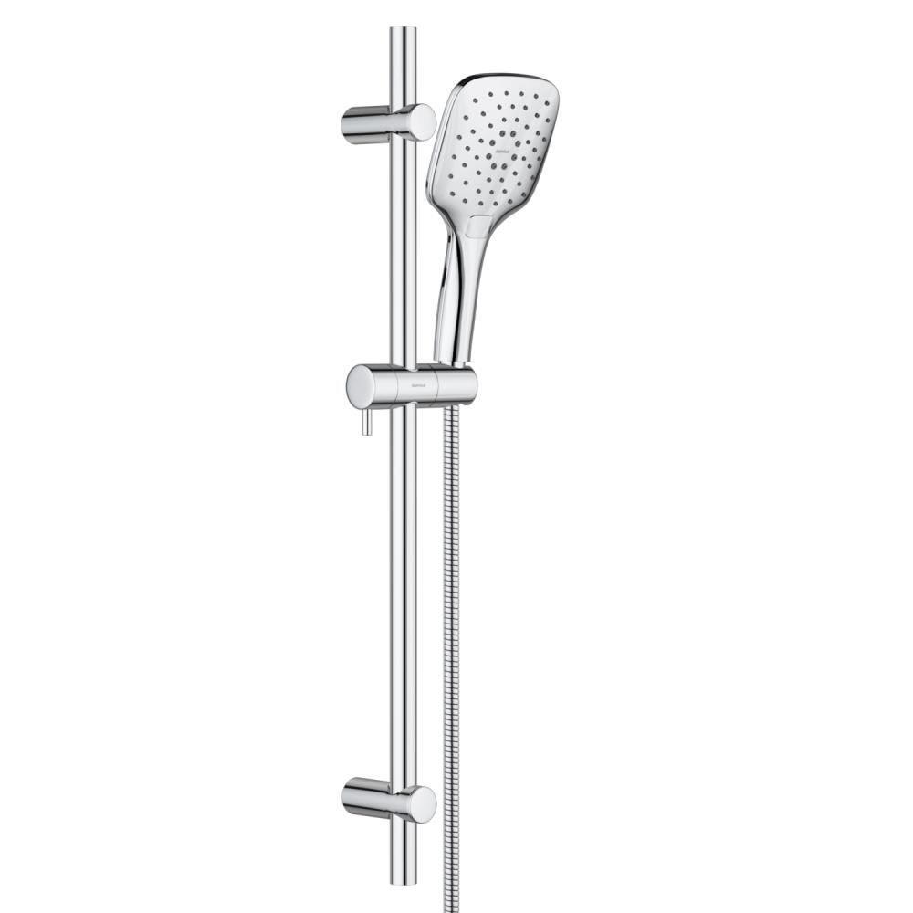 Симметричные формы и четкие грани привлекают к себе внимание с первого взгляда и задают динамику всему интерьеру. Усовершенствованный ручной душ с тремя режимами. Штанга длиной 700 мм можно установить на комфортной для вас высоте а широкий диаметр лейки 120 мм оптимален для водных процедур.