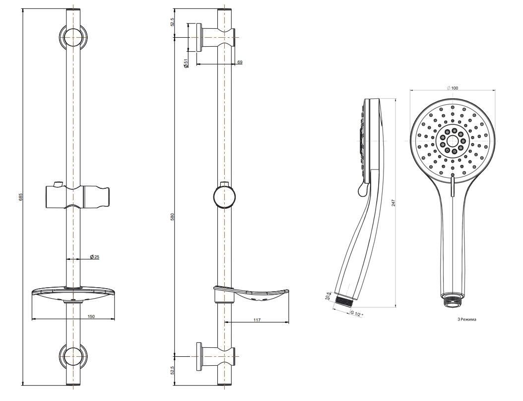 —Душевой гарнитур Kerama Marazzi P4CR121KM настенный хром