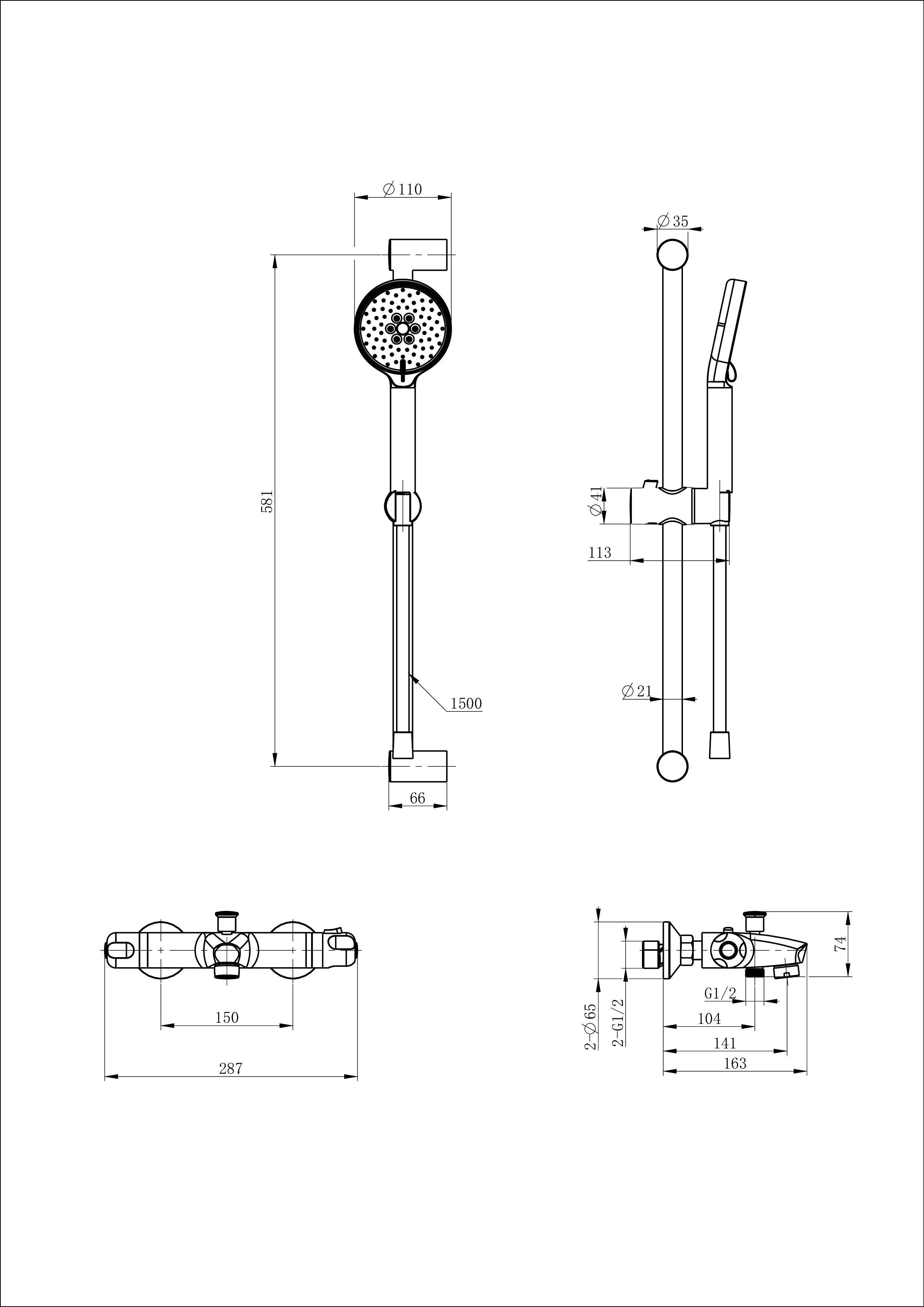 —Душевой гарнитур со смесителем Wonzon & Woghand WW-C2001-A-CR настенный хром