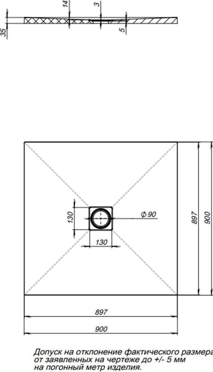 —Душевой поддон из искусственного камня Aquanet Pleasure 00258888 90х90 черный без каркаса