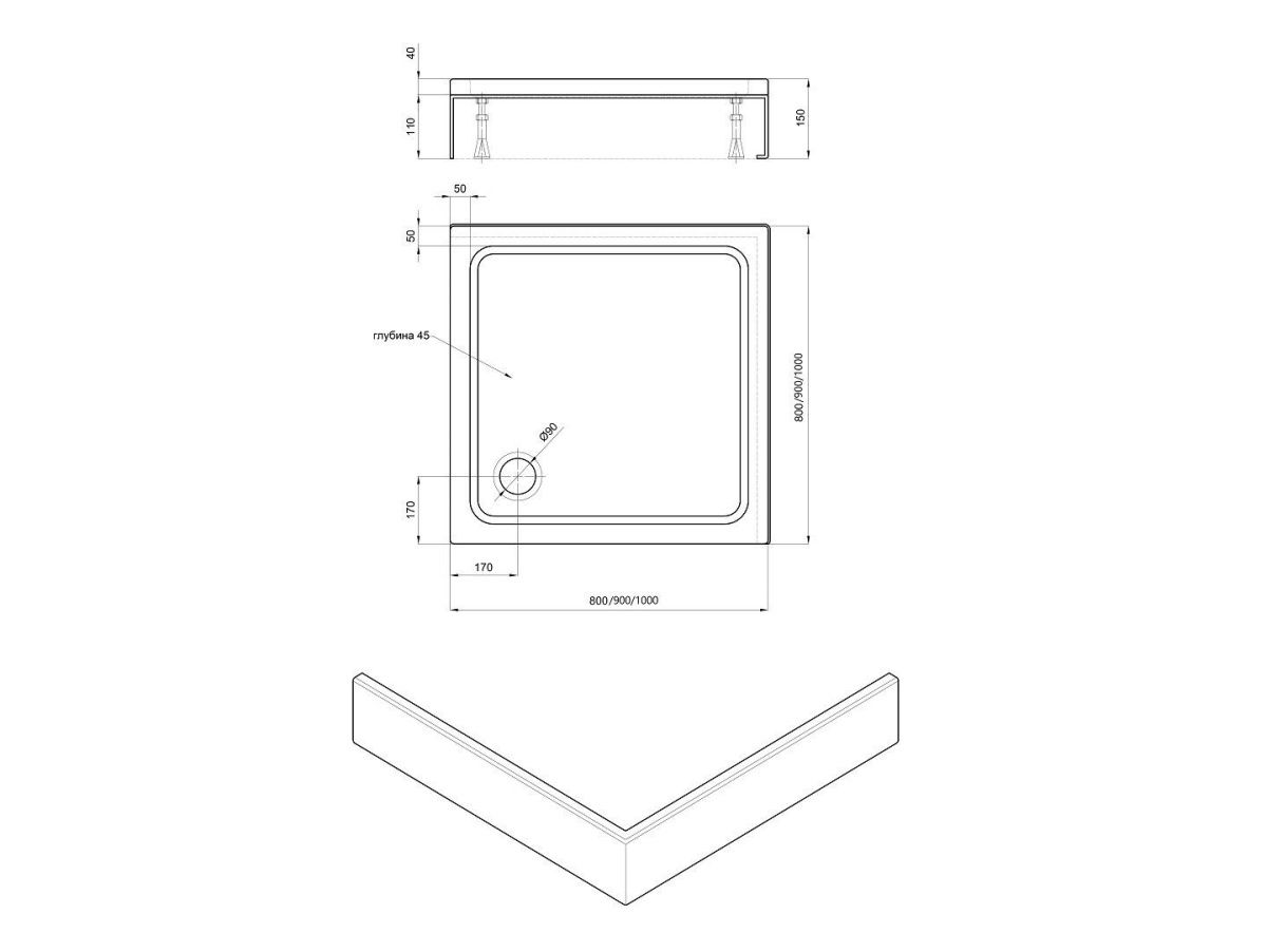 - Комфортная универсальная высота поддона 15 см