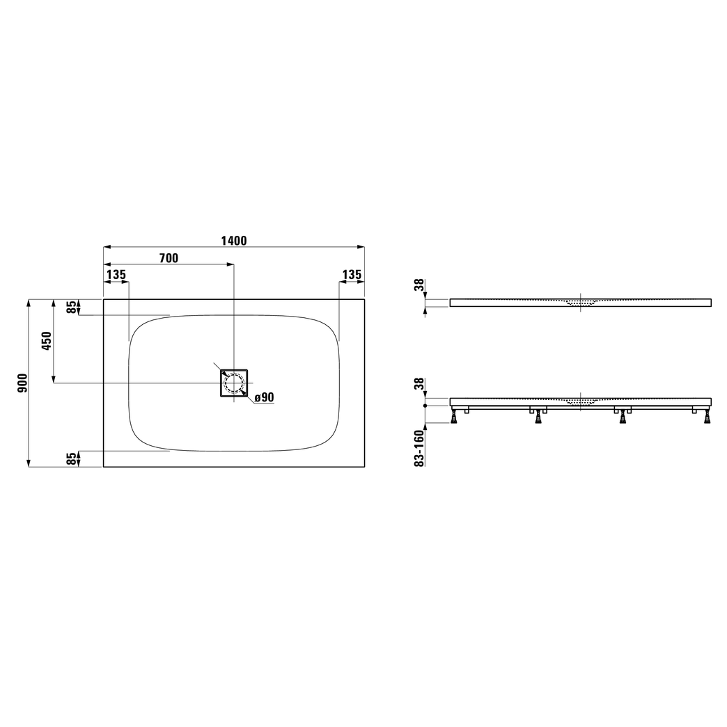 Душевой поддон из искусственного камня Laufen Solutions 2.1544.5.000.000.1 140х90 белый без ножек