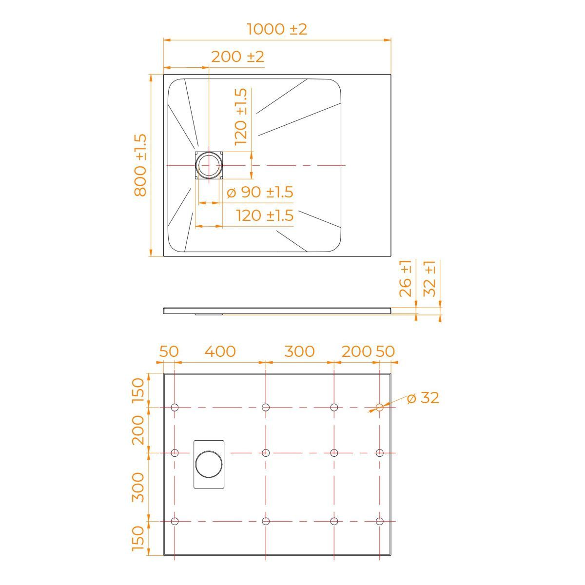 Общая высота поддона: 26 мм.;