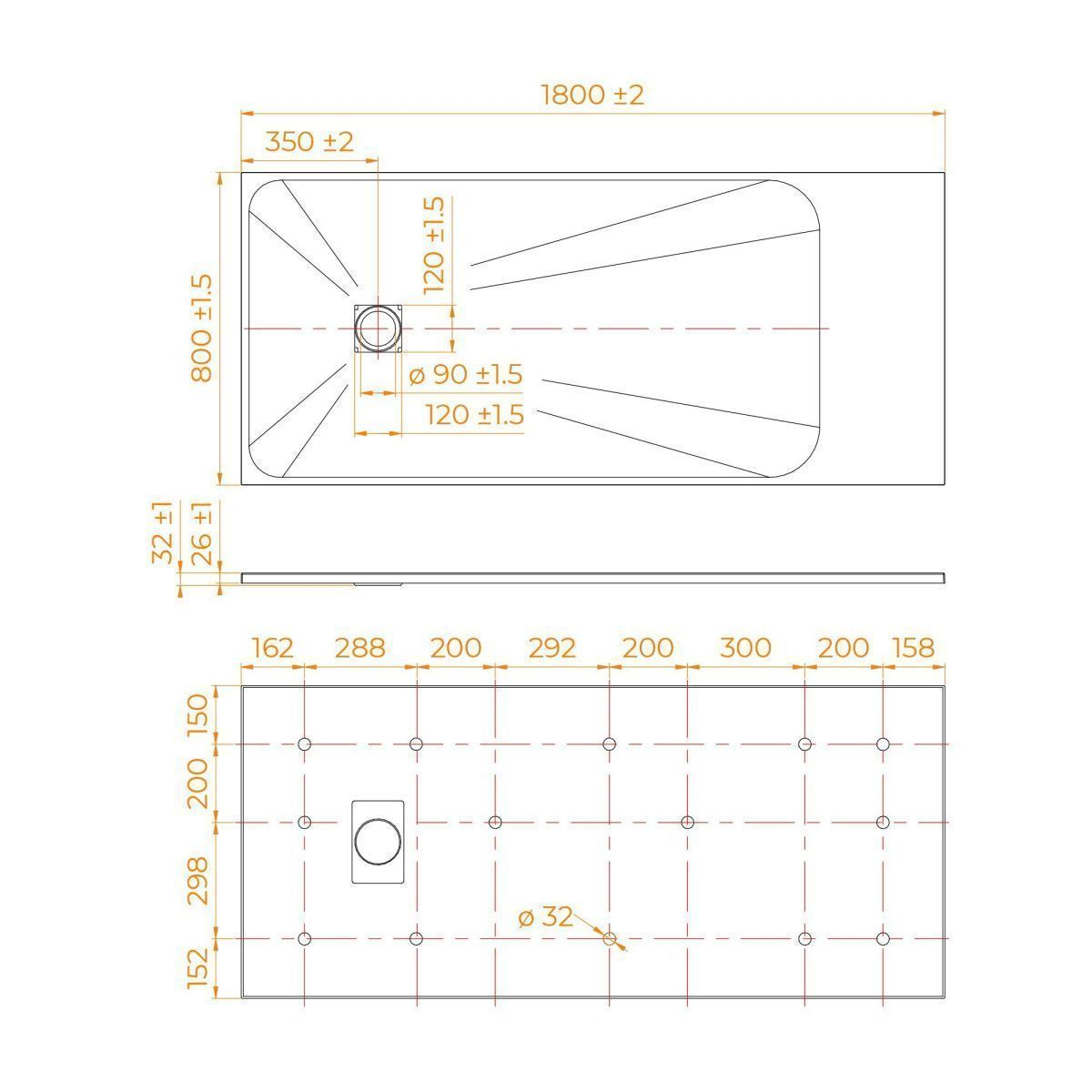 Общая высота поддона: 26 мм.;