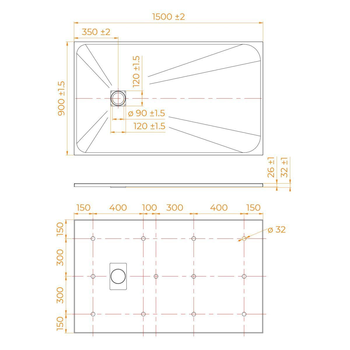 Общая высота поддона: 26 мм.;