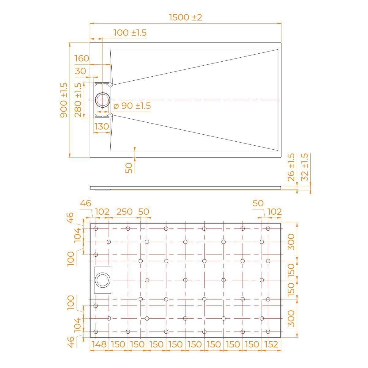 Общая высота поддона: 26 мм.;