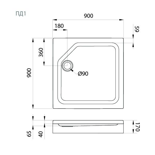 —Душевой поддон акриловый Тритон Щ0000004026 90х90 белый с каркасом