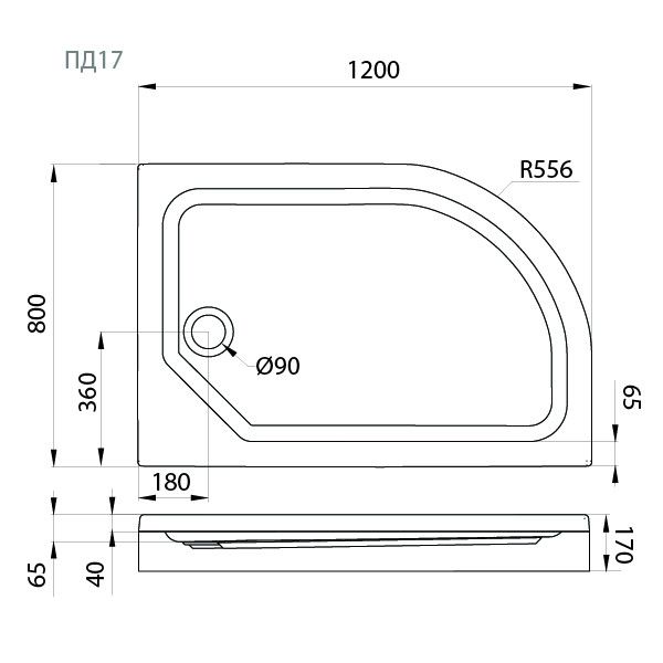 Душевые поддоны четверть круга