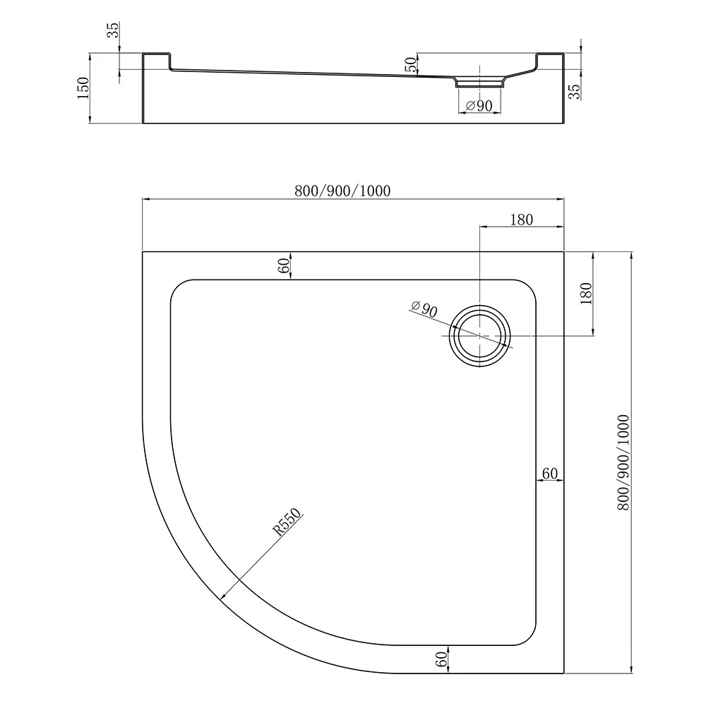 Душевые поддоны четверть круга