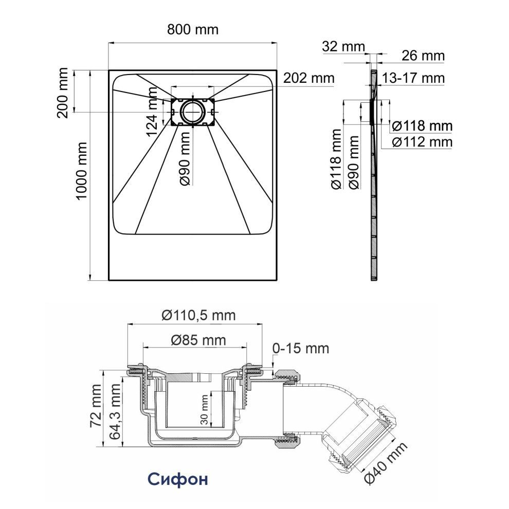 —Душевой поддон из стеклопластика Wasserkraft Elbe 74T 74T17 100х80 черный