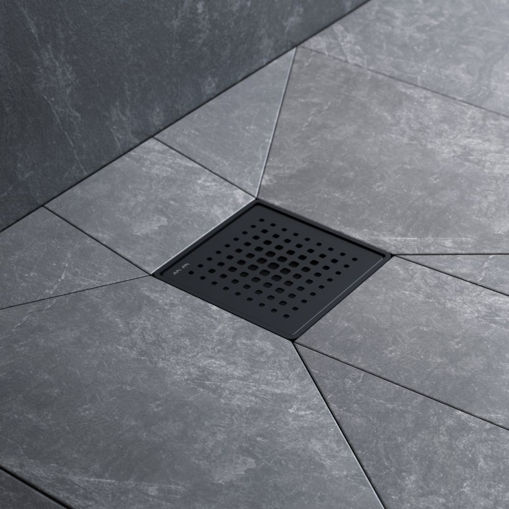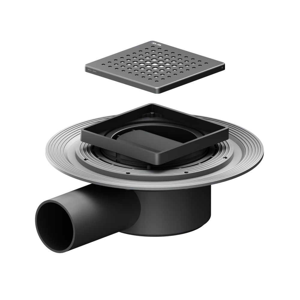 Выход изделия на 50 мм. Размер трапа 10 см. Дизайн продукта выполнен в элегантном матовом черном цвете.