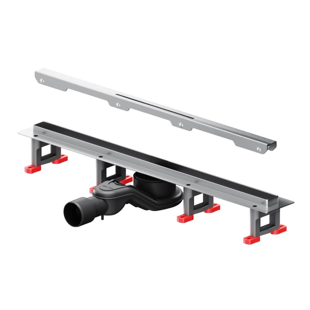 Продукт обладает низкой высотой монтажа и возможностью регулировки что предполагает экономию бюджета при заливке пола. Нержавеющая сталь со специальным антикоррозийным защитным покрытием нанесенная методом кислотной пассивации. Выход разработан на два диаметра: 40 и 50 мм которые выбираются в процессе монтажа.