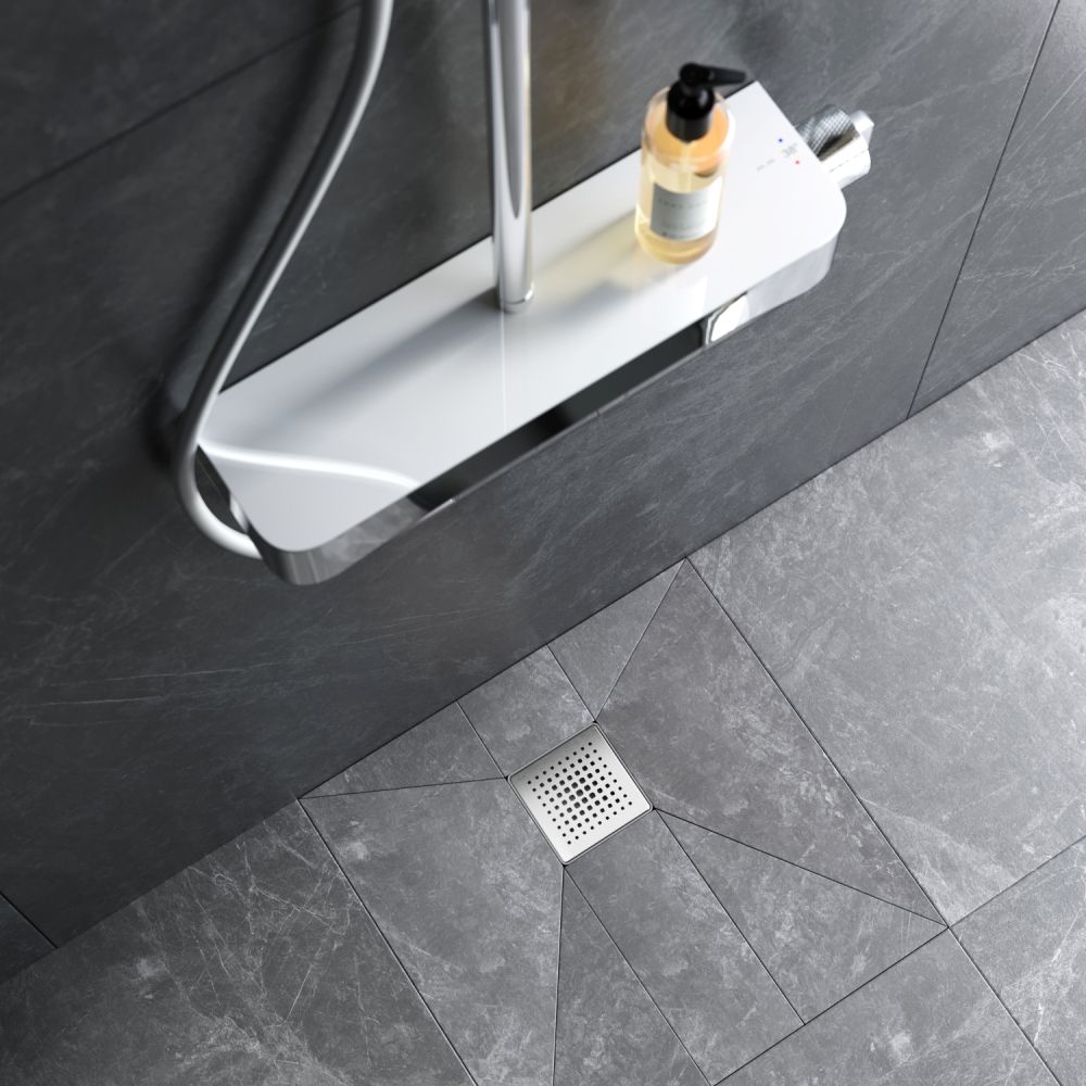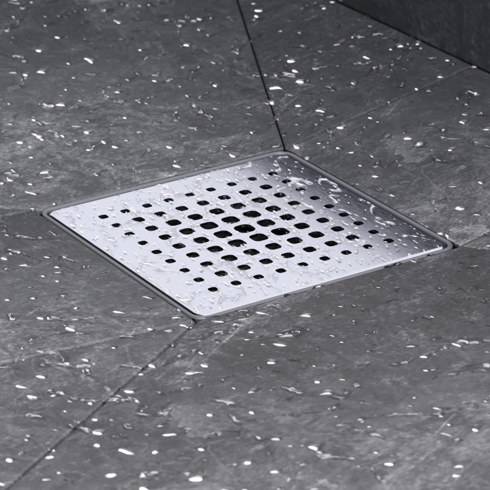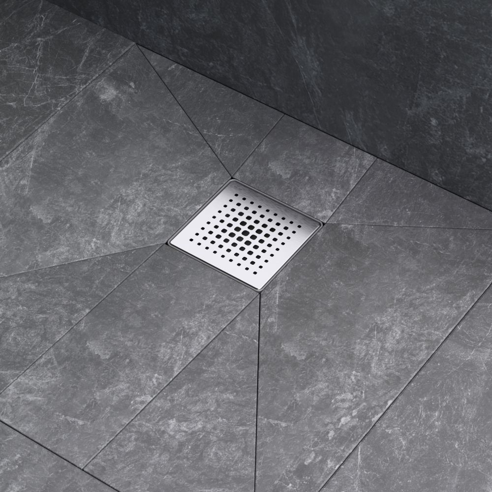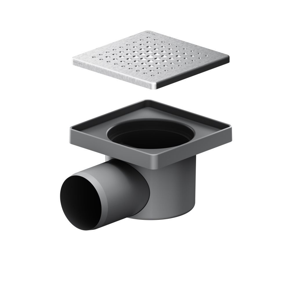 Выход изделия на 50 мм. Размер трапа 10 см. Дизайн продукта выполнен в матовом стальном цвете.